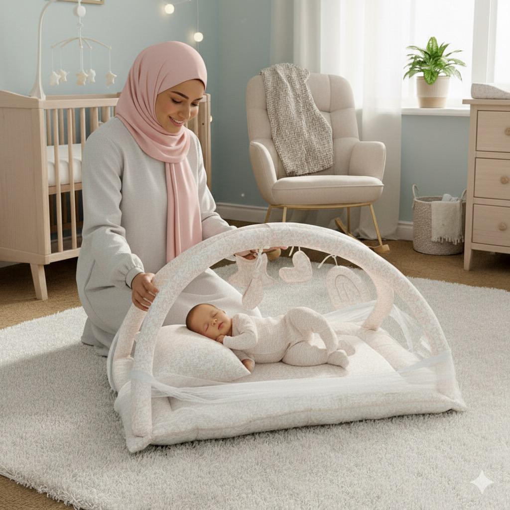 Baby Snuggle Mosquito Net with Pillow & Toy Hangings-Pink Floral