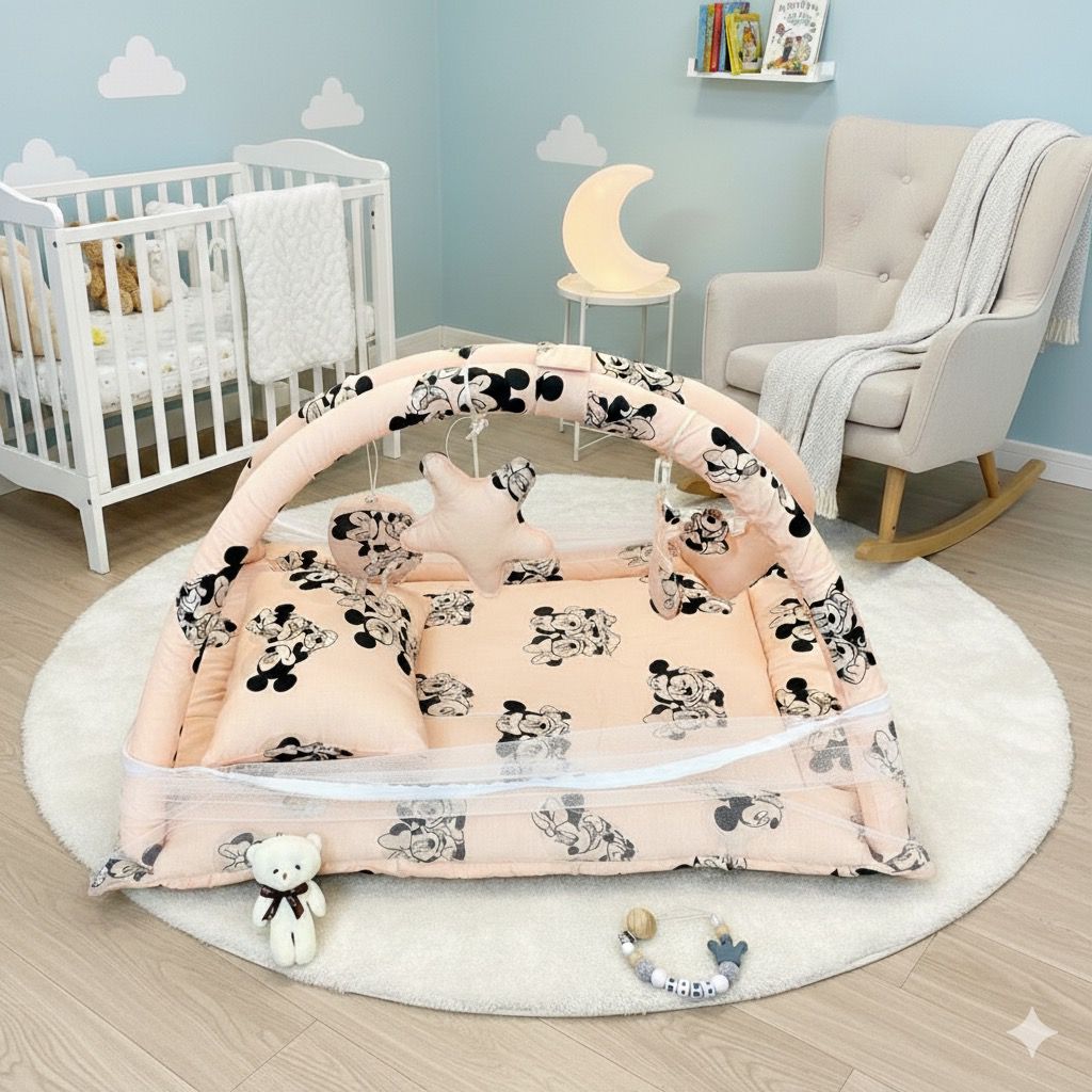 Baby Snuggle Mosquito Net with Pillow & Toy Hangings- Micky Mouse