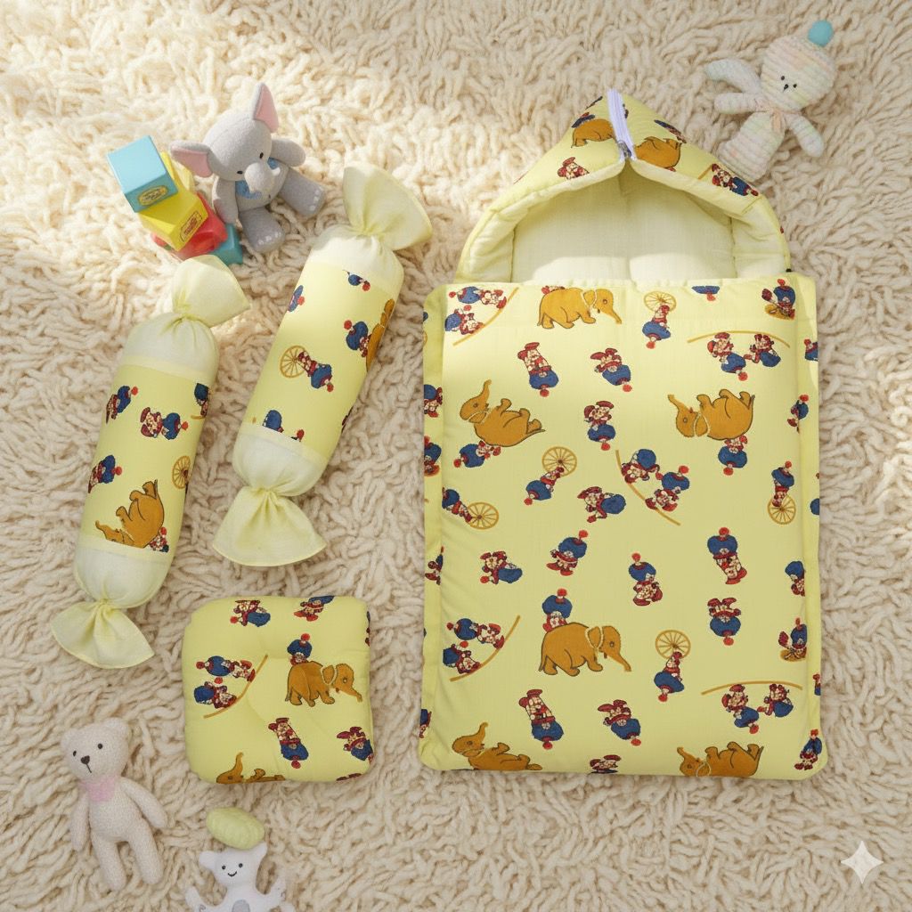 Cotton Printed Baby Carry Nest with Pillows-Yellow