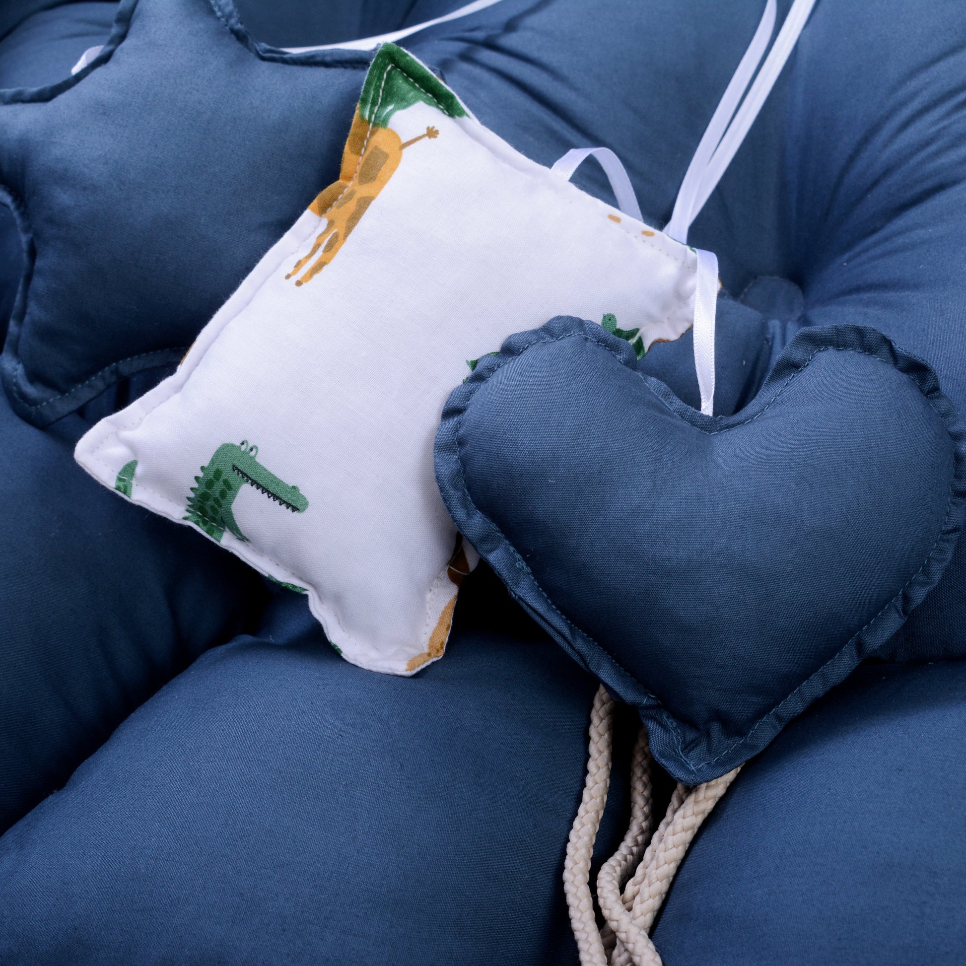 Printed Baby Round Cot with Pillows- Teal Forest