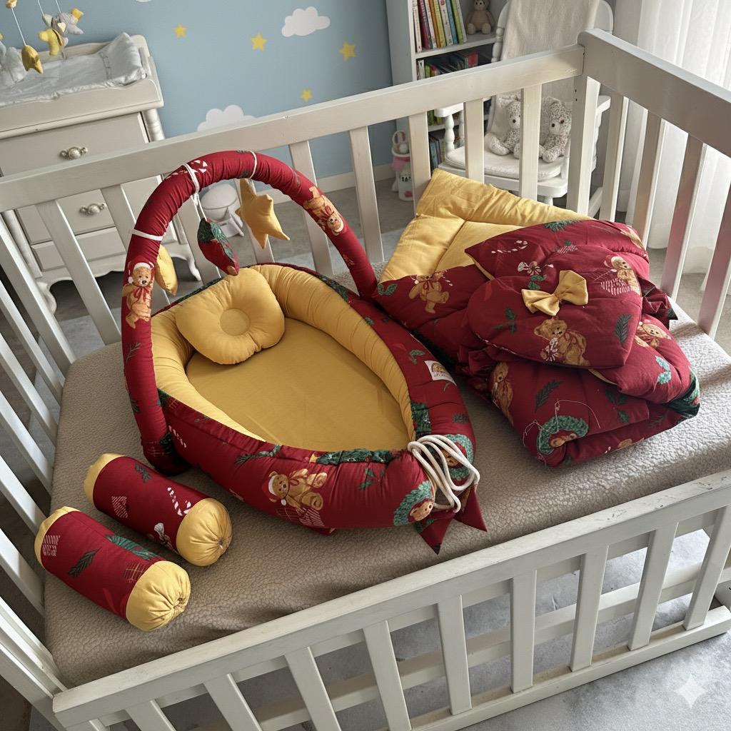 Printed Cotton Baby Snuggle Bed Set- Red Oriented